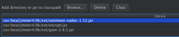 2.将gson.jar、commons-codec-1.12.jar包置于..\jmeter\lib\ext下,并将该jar包添加到测试计划的Library中;否则会报:Typed variable declaration : Class: JSONObject not found in namespace的错误;