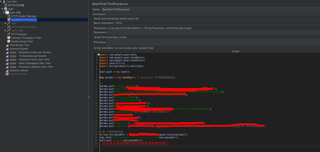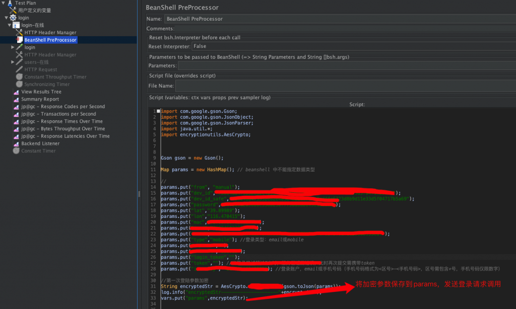 Map params = new HashMap(); // beanshell 中不能指定数据类型String encryptedStr = AesCrypto.xxxxxx(gson.toJson(params));