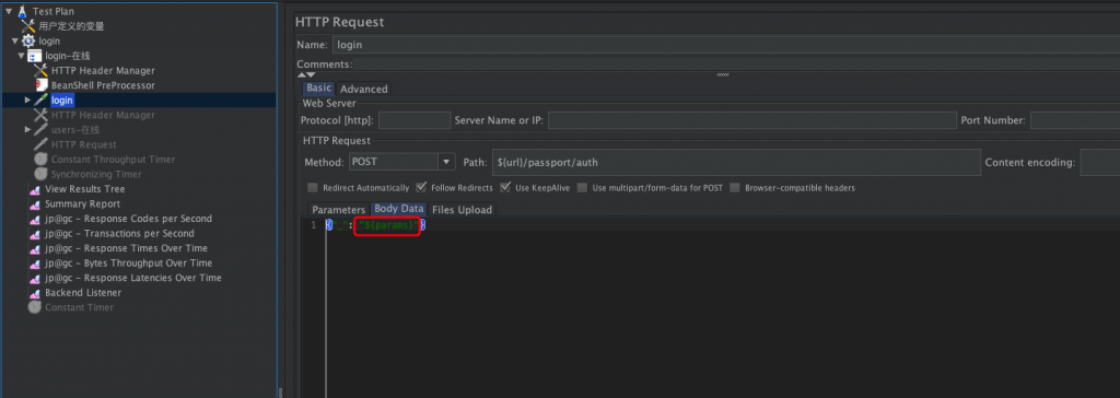假设现在有一个登录HTTP接口,且这个登录接口对密码做了Base64加密,这个时候我们要测试这个登录接口,就可以使用BeanShell前置处理器 ,先利用脚本将密码做Base64加密,HTTP采样器中再使用密码这个变量的值
