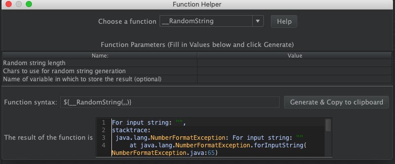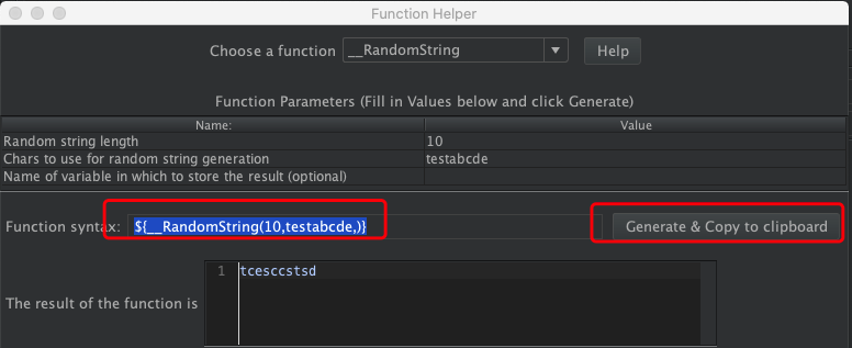 如果参数包含逗号,那么一定要使用“\”来转义,否则JMeter会把它当作一个参数分隔符 - 实际使用时,可通过函数助手对话框选择函数,设置参数后,点击生成按钮生成函数字符串。