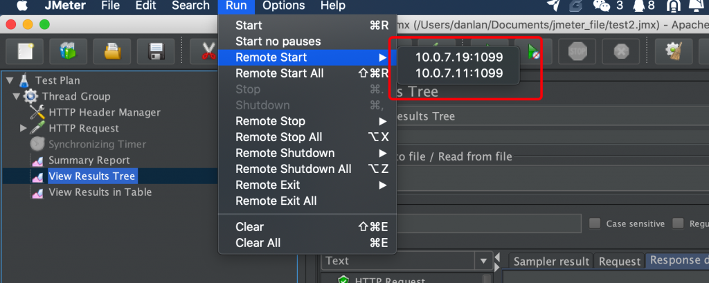 1、jmeter启动之后在如下选项中,会出现你添加的远程主机列表