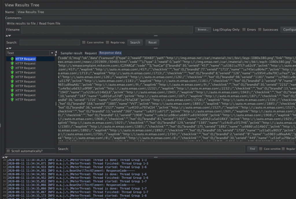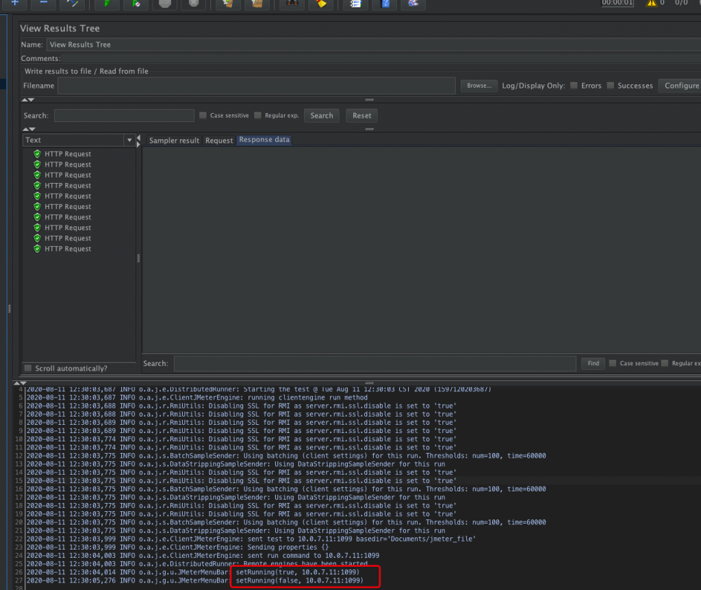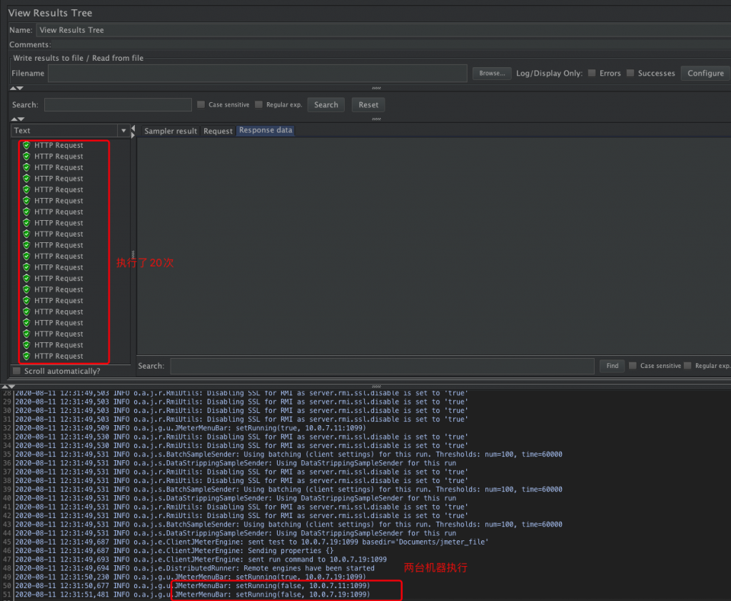 直接点击启动,是jmeter server机器发起10次请求,结果如下