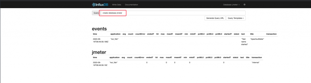 如果启动成功应该会InfluxDB的web ui界面。查看有没有jmeter库,没有就新建一个。