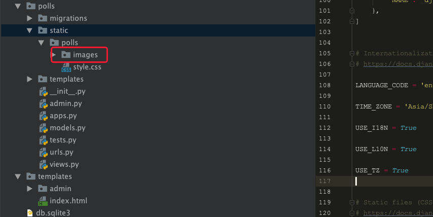 首先,在你的 polls 目录下创建一个名为 static 的目录。Django 将在该目录下查找静态文件,这种方式和 Diango 在 polls/templates/ 目录下查找 template 的方式类似。