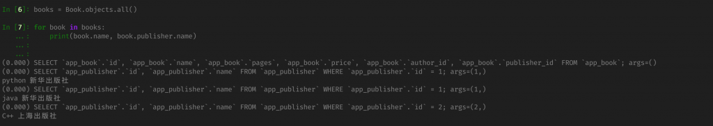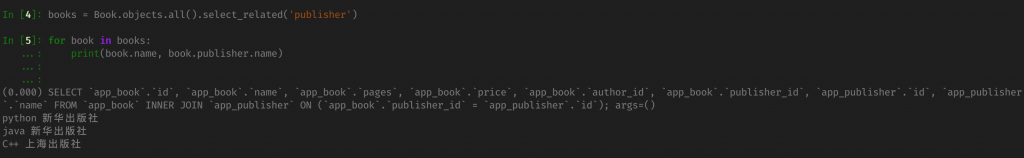 Book.objects.all().select_related('author').select_related('publisher') # Django1.7后