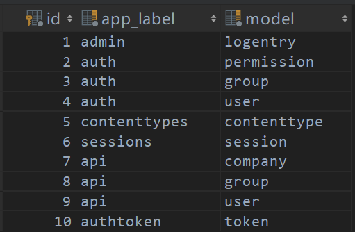 contenttypes不是中间件,不是视图,也不是模板,而是一些"额外的数据表"!所以,在使用它们之前,你需要执行makemigrations和migrate操作,为contenttypes框架创建它需要的数据表,用于保存特定的数据。这张表通常叫做django_content_type,让我们看看它在数据库中的存在方式: