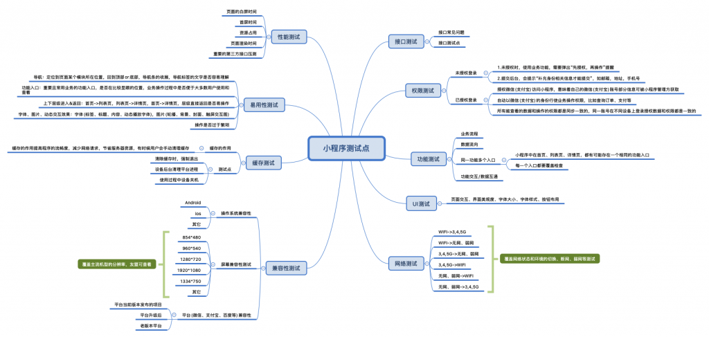单纯功能测试的层面来说,微信小程序测试、APP测试、web测试在流程和功能测试上是没有区别的,但由于载体的不同,导致有一些不同,主要可以从几个方面体现, 具体查看以下PNG图片